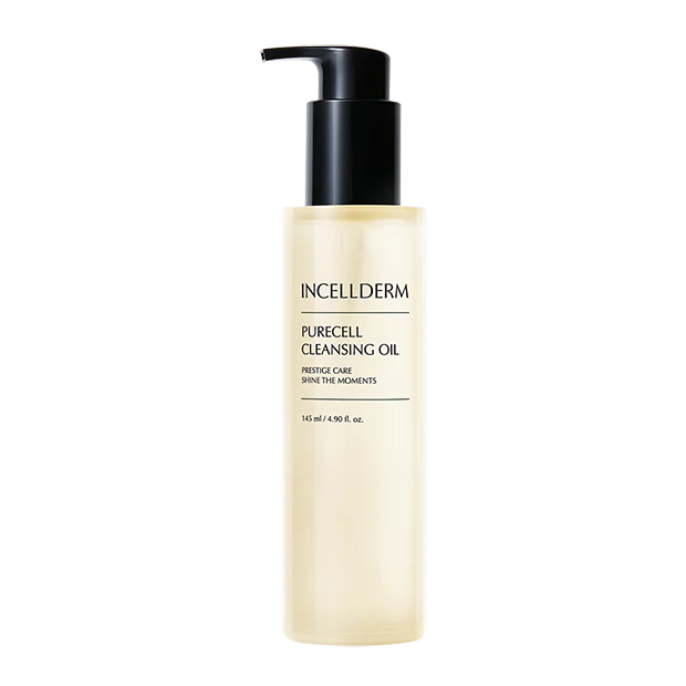 Step 1. Apply 3 to 4 pumps of the Purecell Cleansing Oil onto dry face, massage in to melt dirt and makeup, and rinse thoroughly with warm water.